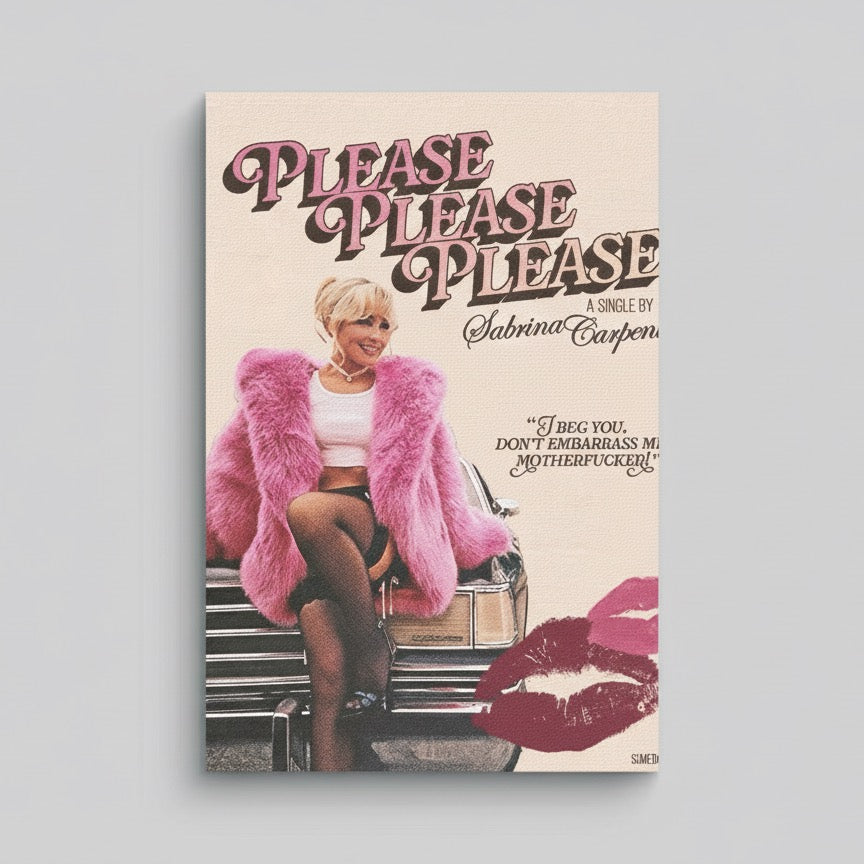 Channel playful retro vibes and pop music flair with the Fillintheblank Please Please Please Sabrina Carpenter Art Print. Featuring bold pink typography, vintage-inspired design elements, and iconic fashion styling, this artwork brings attitude, nostalgia, and chart-topping energy to your decor. Perfect for music lovers, fans of Sabrina Carpenter, and those seeking fun, conversational statement pieces, this premium print is an eye-catching addition to bedrooms, studios, or living rooms. High-quality materials guarantee vivid color and lasting detail for modern pop culture displays.